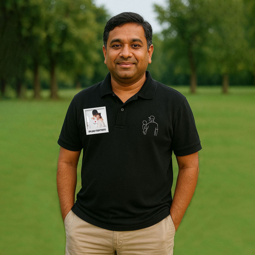 Celebrate your bond with Dad by turning a special photo into a timeless keepsake. Upload your favorite picture, and we’ll create a sleek, minimal line art illustration printed on a premium cotton polo t-shirt. More than just a shirt, it’s a meaningful and personal tribute your father will cherish every time he wears it.