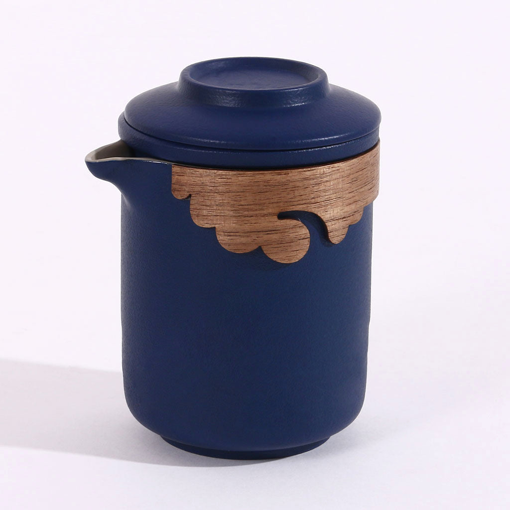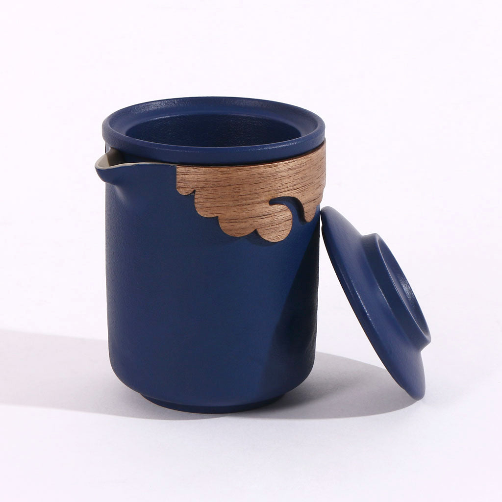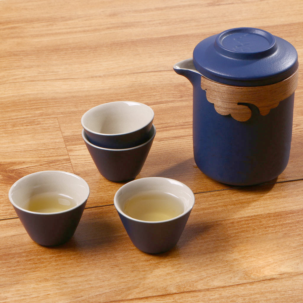 This luxurious portable tea set is crafted for tea lovers who appreciate elegance and convenience. Encased in a sophisticated blue leather-textured briefcase, it includes a teapot with a wooden accent, four ceramic teacups, and a matching leather wallet and pen, making it a perfect gift or travel companion. The minimalist yet refined design blends tradition with modern style for a perfect tea experience anywhere.