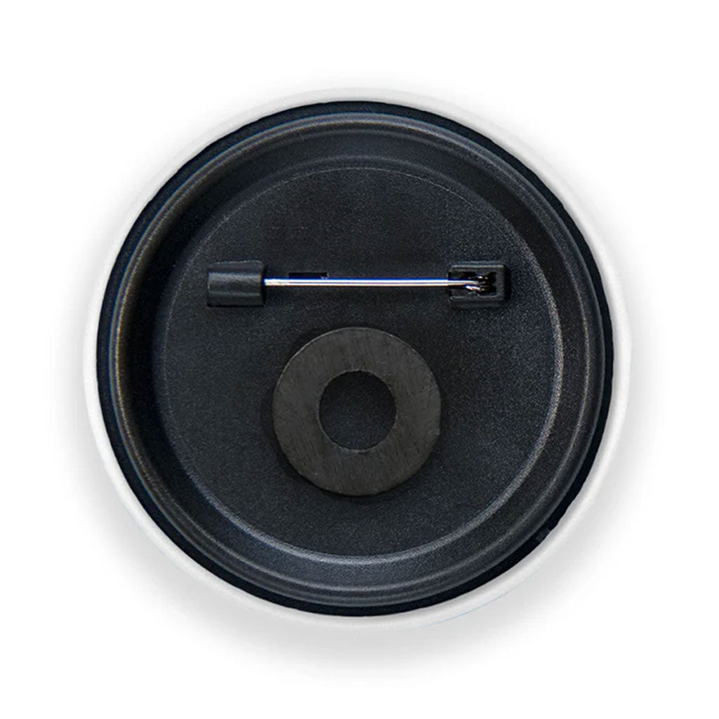 - Back contains a pin & magnet
