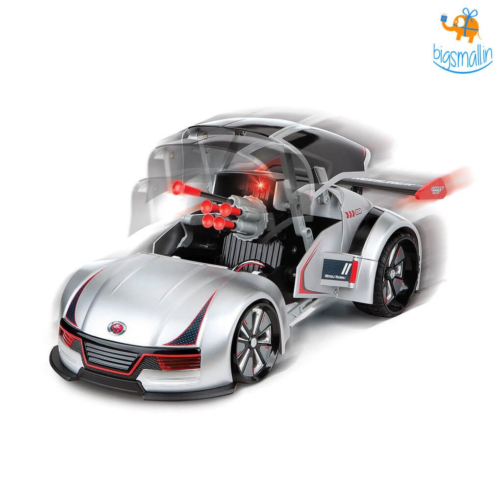 Step up your gifting game with this Missile Launcher Race Car and become the favourite aunt or uncle by getting this amazing toy for the little one. The car is battery operated, so you can turn anyplace into a race track or battleground. The package includes a remote control handset that can be used to fire a barrage of darts (also provided in the set). Transform the car from a racing car to a missile launcher easily and practice your aim with the LED target light. The perfect gift for the little ones, they'll be overjoyed with this multitasking toy.