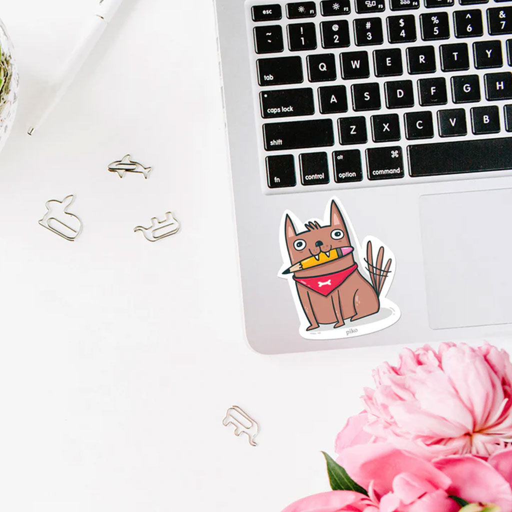 This cute dog pencil sticker adds a touch of charm and whimsy to your laptop or any flat surface. It’s durable, easy to apply, and leaves no residue when removed. Perfect for dog lovers and anyone who enjoys minimalist, artistic designs.