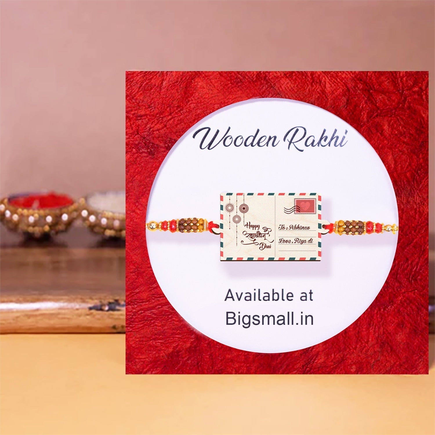 This wooden rakhi looks like a small postcard where you can add your own message and the name of your brother. It comes with a colourful beaded thread that ties easily and feels comfortable. A unique way to make Raksha Bandhan extra special.
