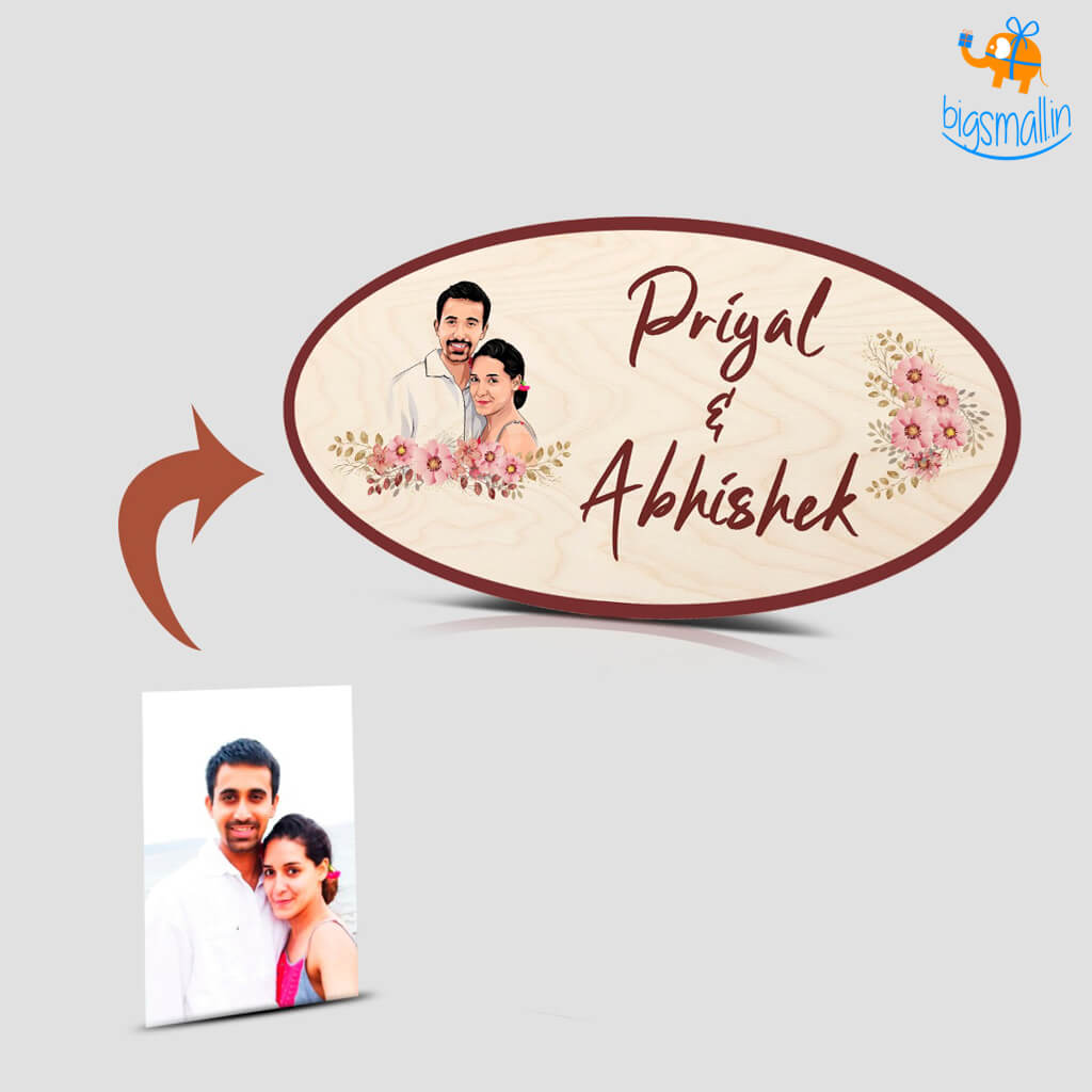 Welcome your guests to your home in a cool way. Introducing Personalized Caricature Oval Name Plate, a unique new take on the traditional nameplates. With the beautiful calligraphy and a lovely picture, it is sure to gain an appreciation of all your guests. It is a freestyle vector art where you send us your best photo and we transform it into a cartoon avatar. We do not change the pose and draw it exactly like the photo by using cartoonish features. The nameplate is pretty easy to hang up on the main gate or outer wall. It will make for a great housewarming gift for your friends who just bought their dream home.