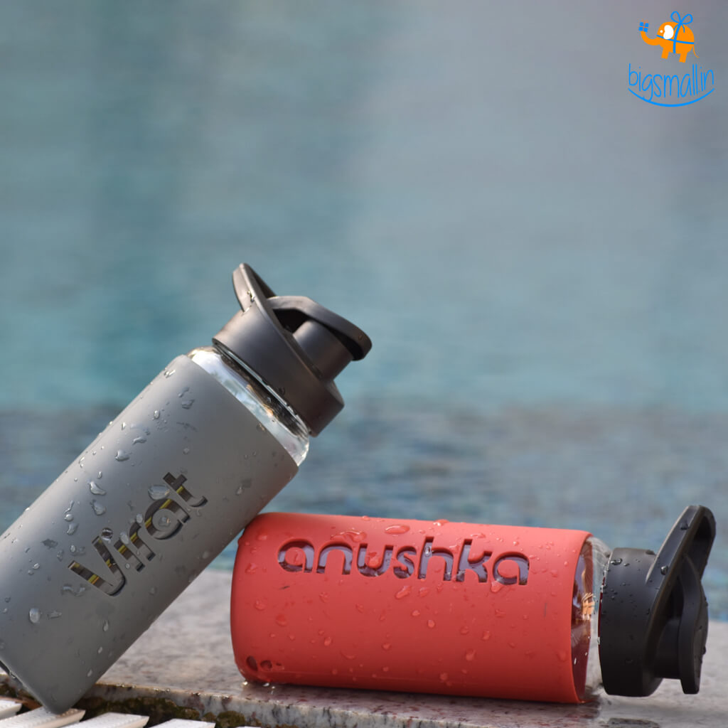 Going to the gym or dance class and losing your water bottle in a sea of normal-looking bottles regularly? Or want to gift your buddy something useful but unique at the same time? Presenting Personalized Name Water Bottle, a sturdy glass bottle with silicone cover with your name written on it. You can customize the bottle with any name, all you have to do is just send us a name and we will work our magic. The wide mouth makes it easy to clean and the protective silicone sleeve provides for a non-slip gripping surface which helps prevent breakage. This is one of the best gifts online which makes for a great personalized birthday gift for a friend or family member.
