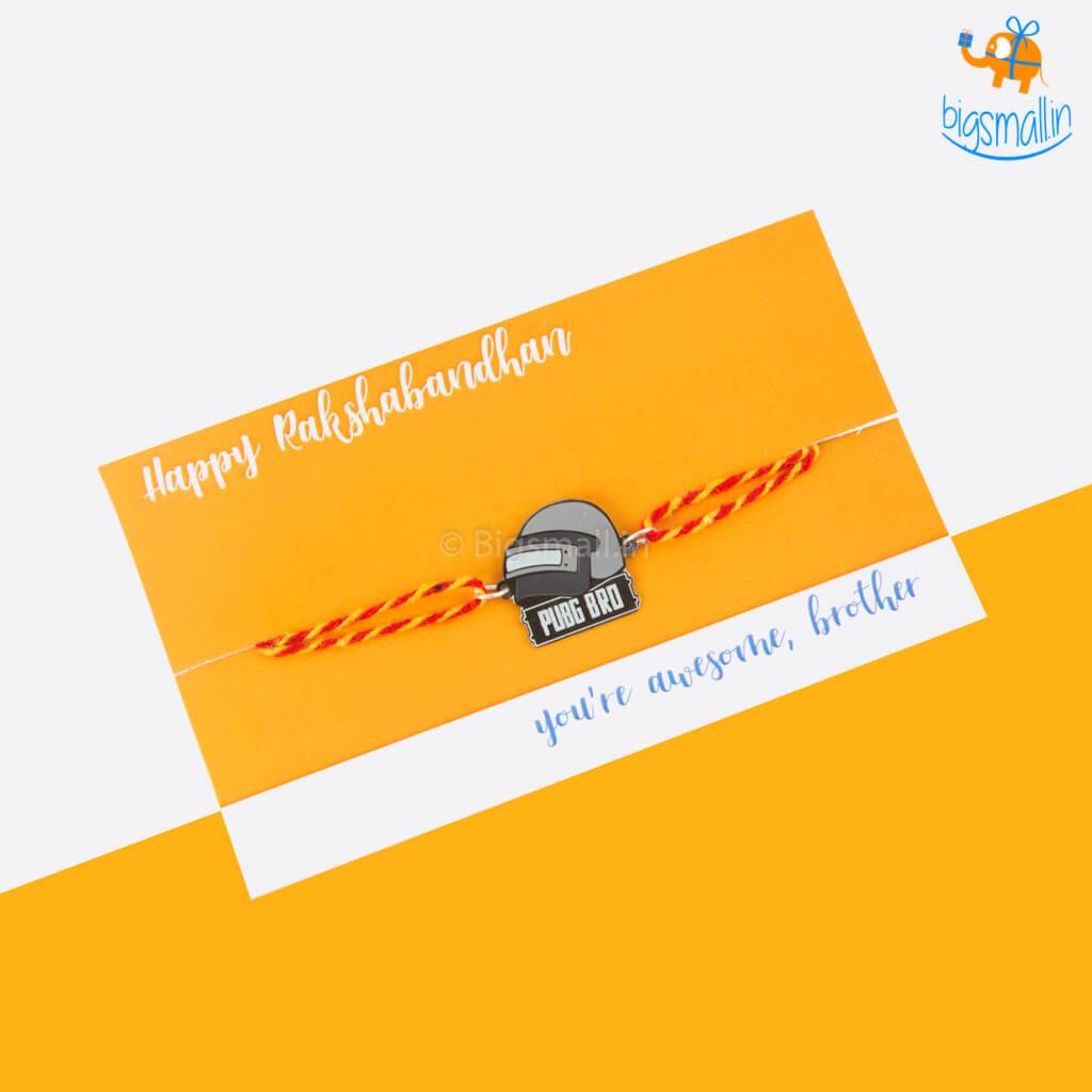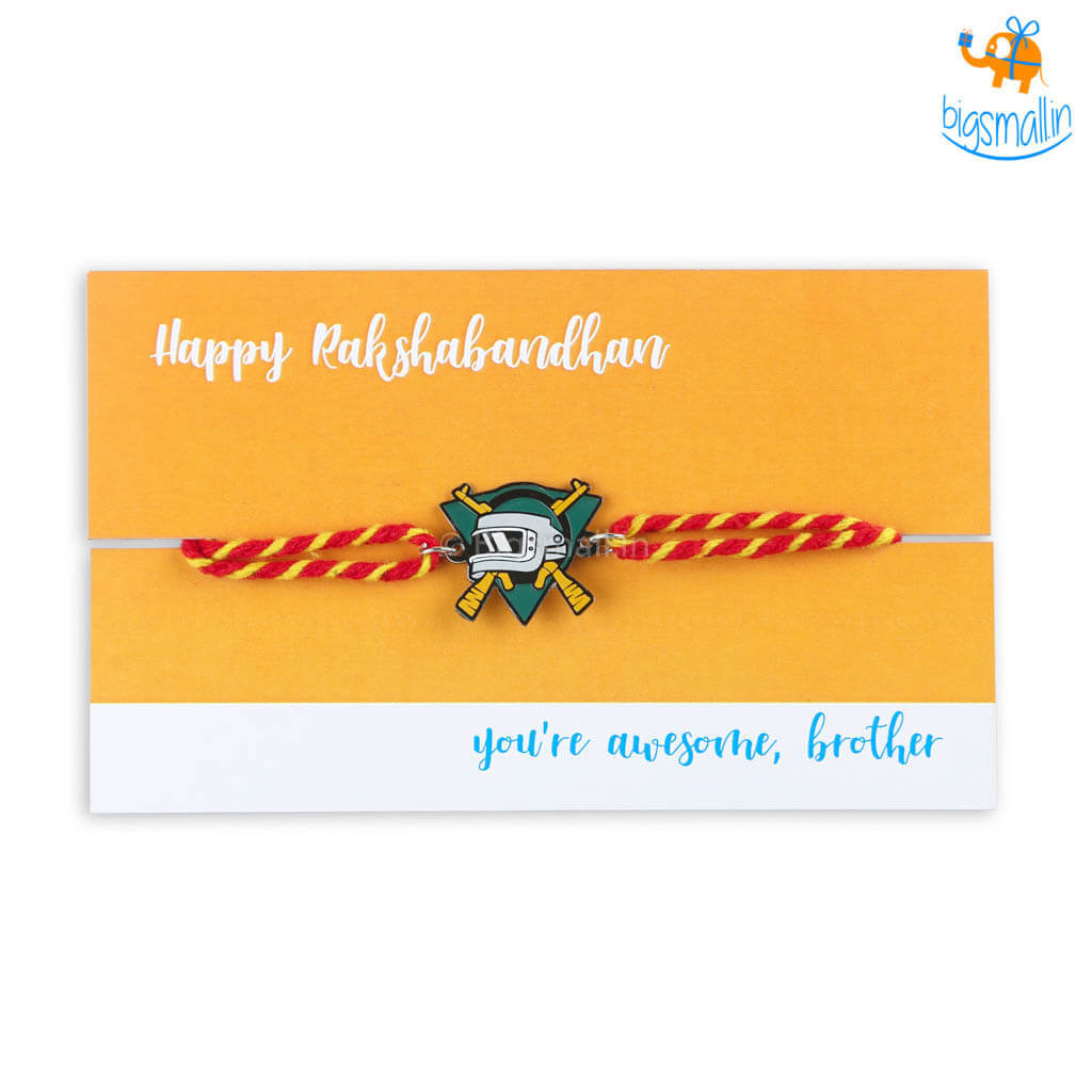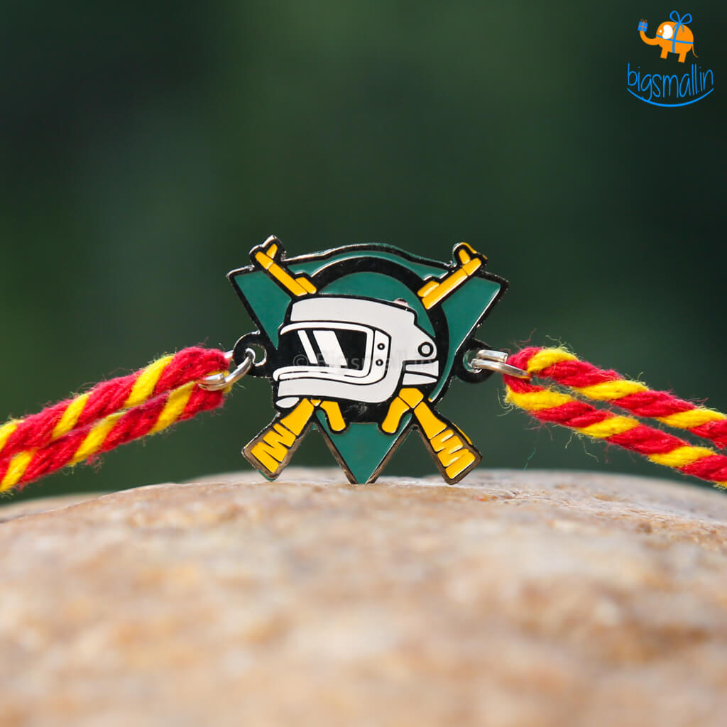 For the brother who loves chicken dinners and not just the real ones, we bring to you the customized, personality specific BGMI Bro rakhi. Complete with a brass sheet embellishment in the shape of the iconic helmet saying PUBG Bro, this personality specific rakhi is designed to rock the rakhi scene this year! Gift one to your PUBG crazed brother and watch him jump with glee.