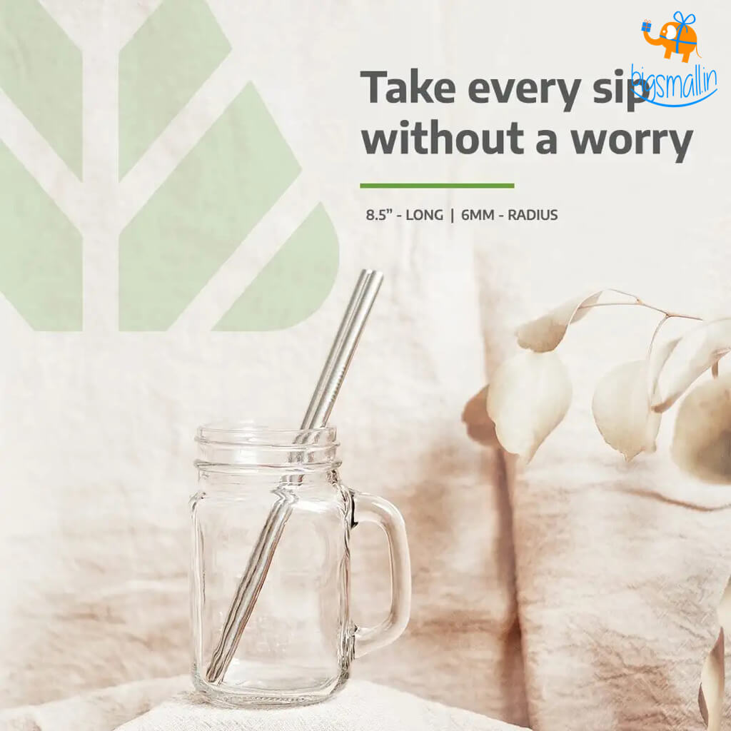 These attractive Metallic stainless steel eco-friendly Straws are a great option to use in place of single-use plastic straws. The set includes two straight and two bent straws. The package also has a cleaner to easily clean the straws. The metallic finish will look great on a dinner table. The stainless steel also makes it easy to carry around. It'll be a great gift for someone who is a fitness freak and likes to make fruit shakes and juices and is environmentally conscious.
