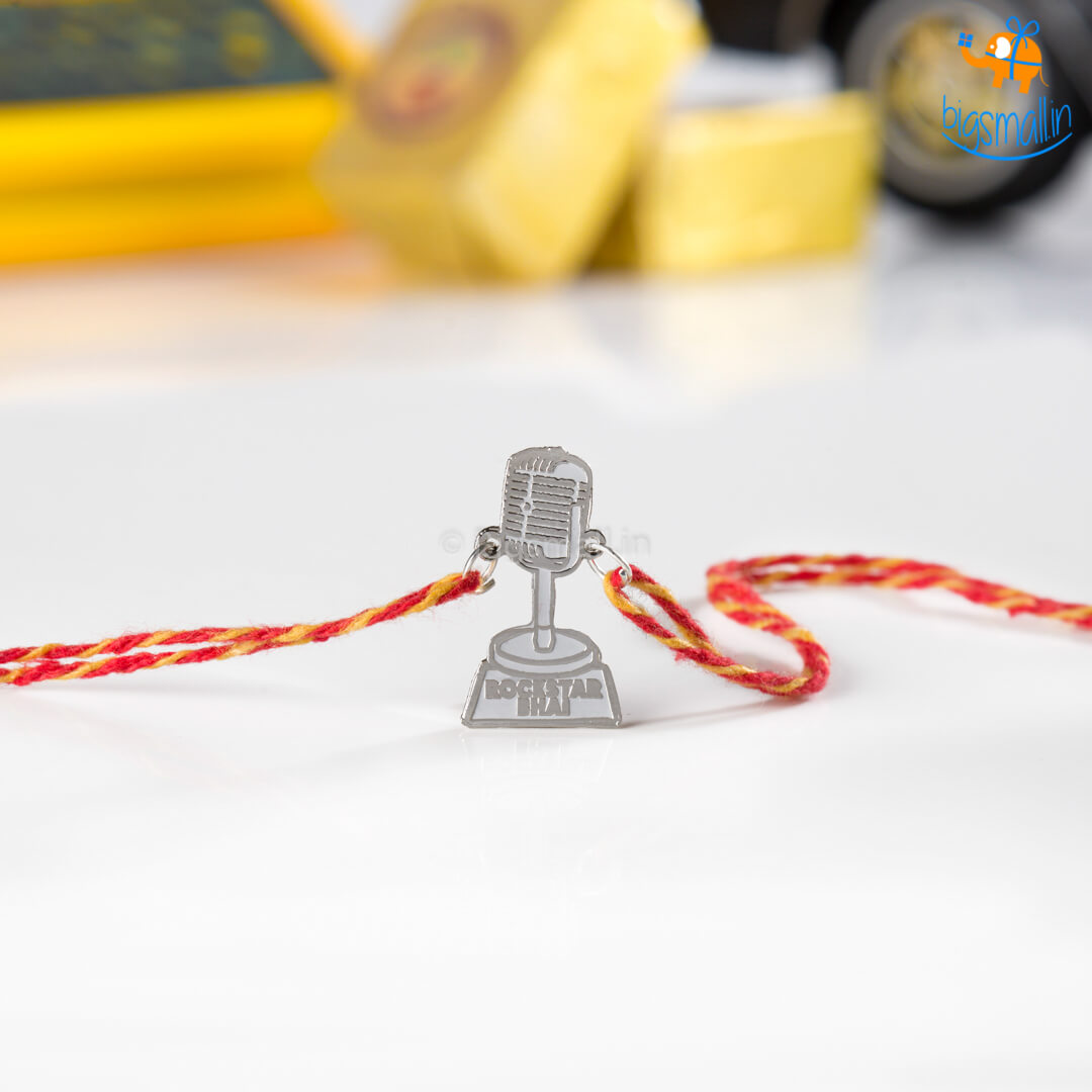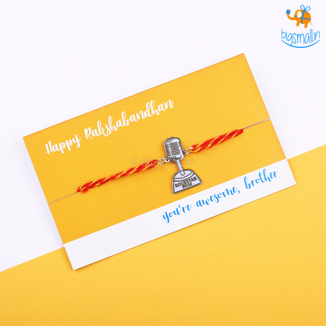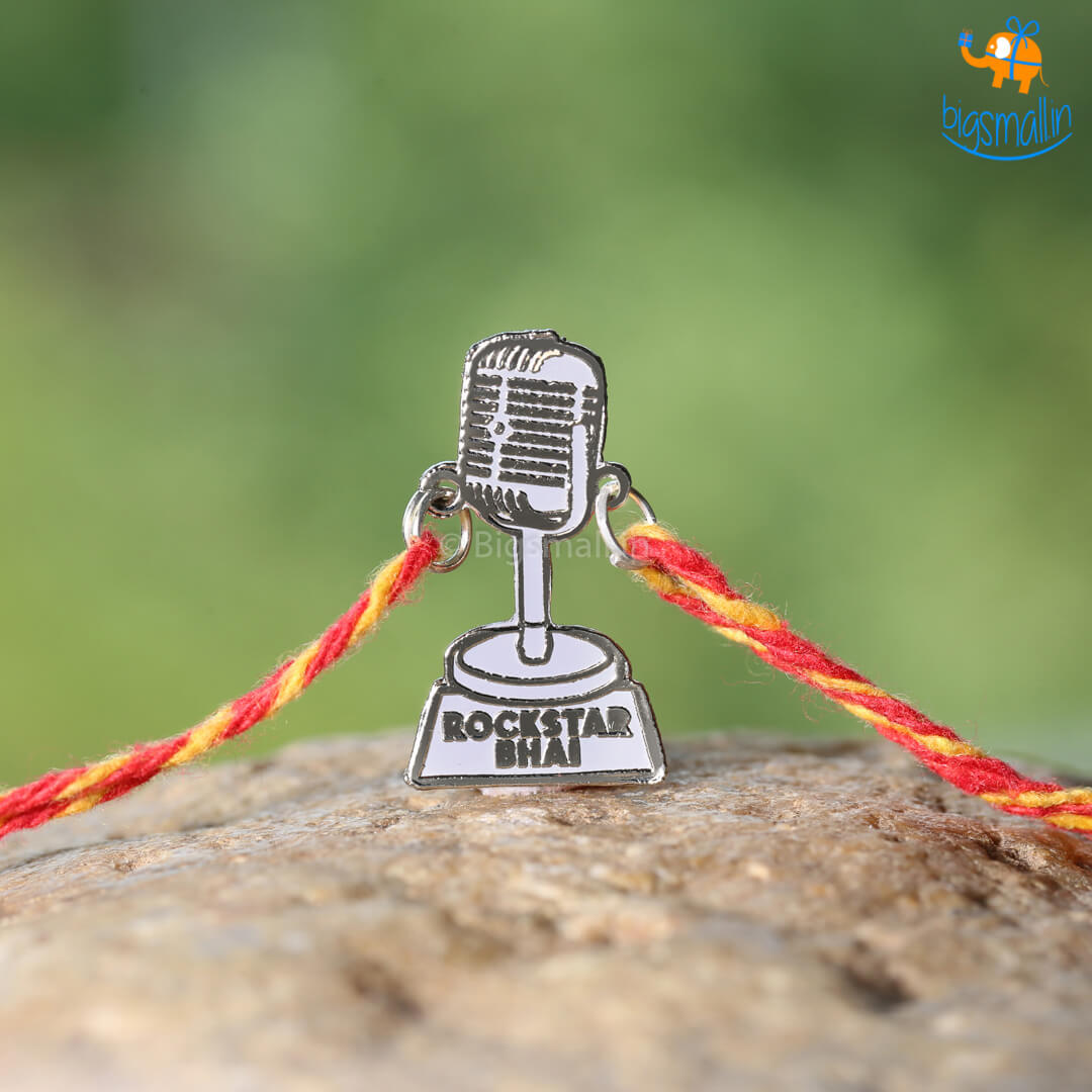 Grew up listening to your brother's angelic vocals? Always supported him in whatever competitions he participated in? If so, then this rakhi is perfect for him. Celebrate your undeniable strong bond and your unwavering support this Rakhi season with this personality-specific Rakhi. Rockstar Bhai Rakhi comes with a metal sheet embellishment in the shape of a microphone.