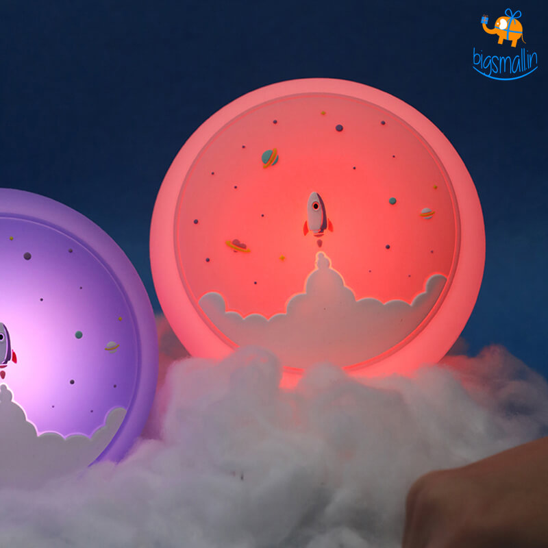 - Night lamp in the shape of a starry night with a rocket blasting off