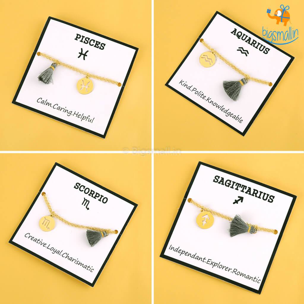 - Respective zodiac symbol is embossed on the circular disc attached to each bracelet