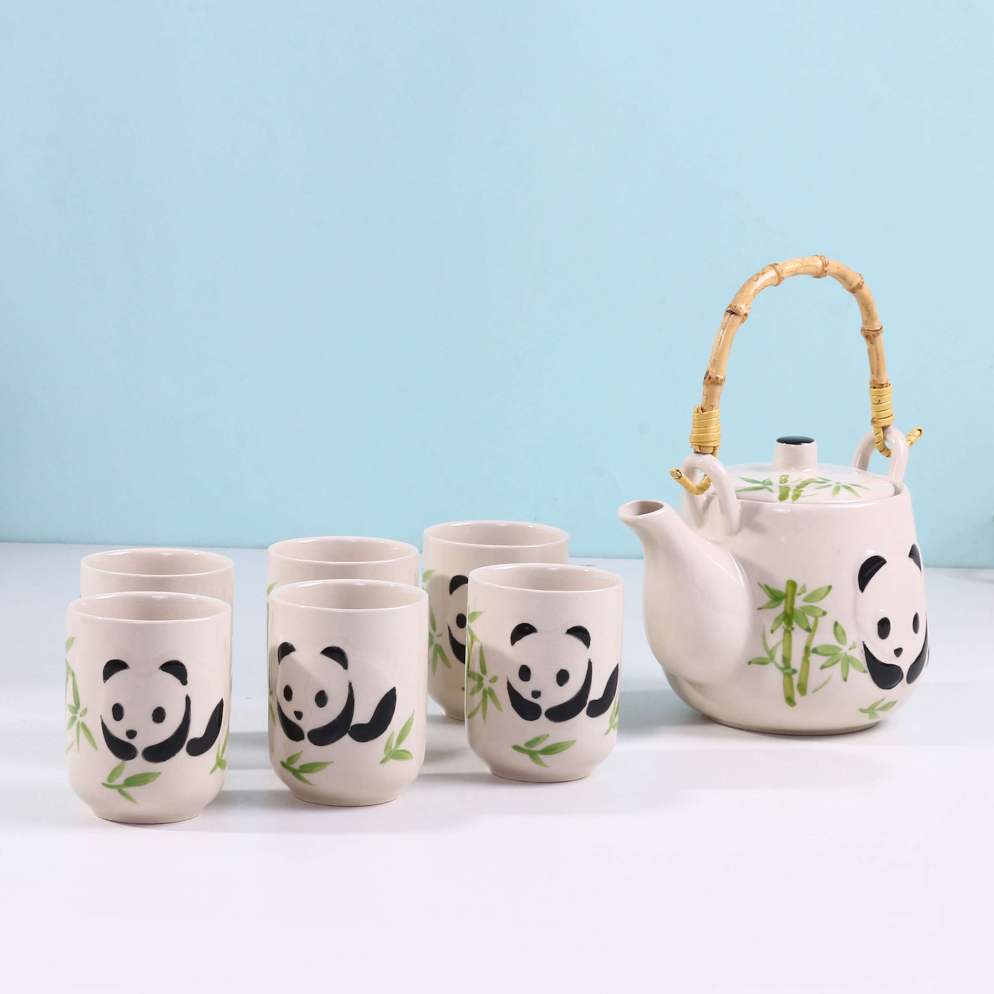 Delight in the charm of this Panda Bamboo Ceramic Teapot Set, featuring a beautifully crafted teapot with a bamboo handle and six matching cups. Each piece is adorned with playful panda illustrations and delicate bamboo designs, adding a touch of nature-inspired elegance to your tea experience. Perfect for tea enthusiasts, this set combines functionality and aesthetic appeal, making it ideal for hosting gatherings or gifting to loved ones.