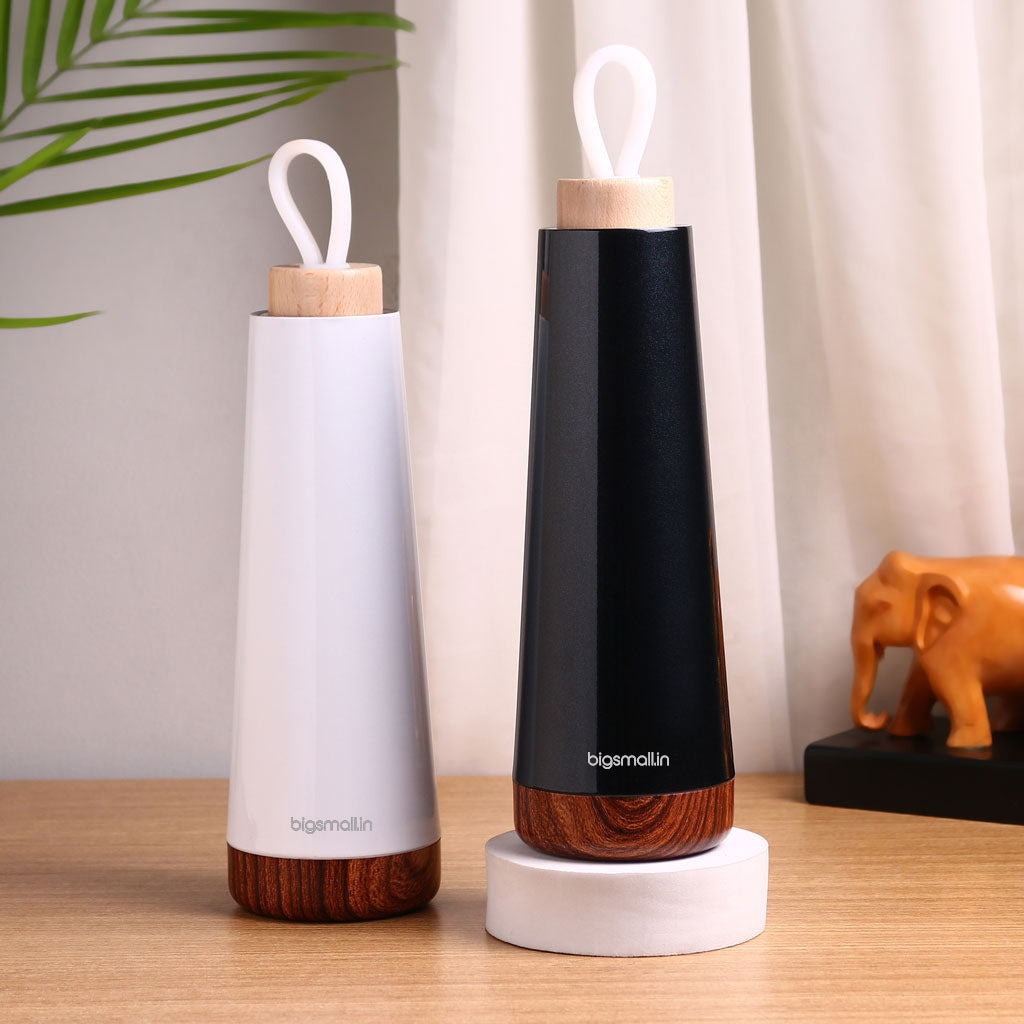 Introducing the TerraLoop Bottle – a perfect harmony of natural textures and modern design. With a sleek silhouette, wood-textured base, and bamboo lid, this bottle is crafted for those who appreciate beauty in the details. Available in classic black or pure white, and customizable with your name, it’s more than just a bottle—it’s a reflection of you.