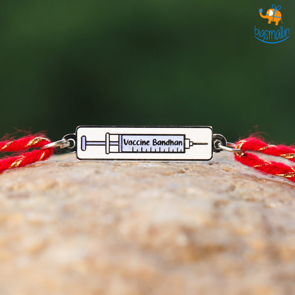 This year we all need a different kind of protection, so we present this Vaccine Bandhan Rakhi. While praying for your sibling's protection against all things bad, add the virus to the list and present him with this rakhi. Celebrate your undeniable strong bond this Rakhi season with this personality-specific Rakhi. Vaccine Bandhan Rakhi comes with a metal sheet embellishment in the shape of a syringe.